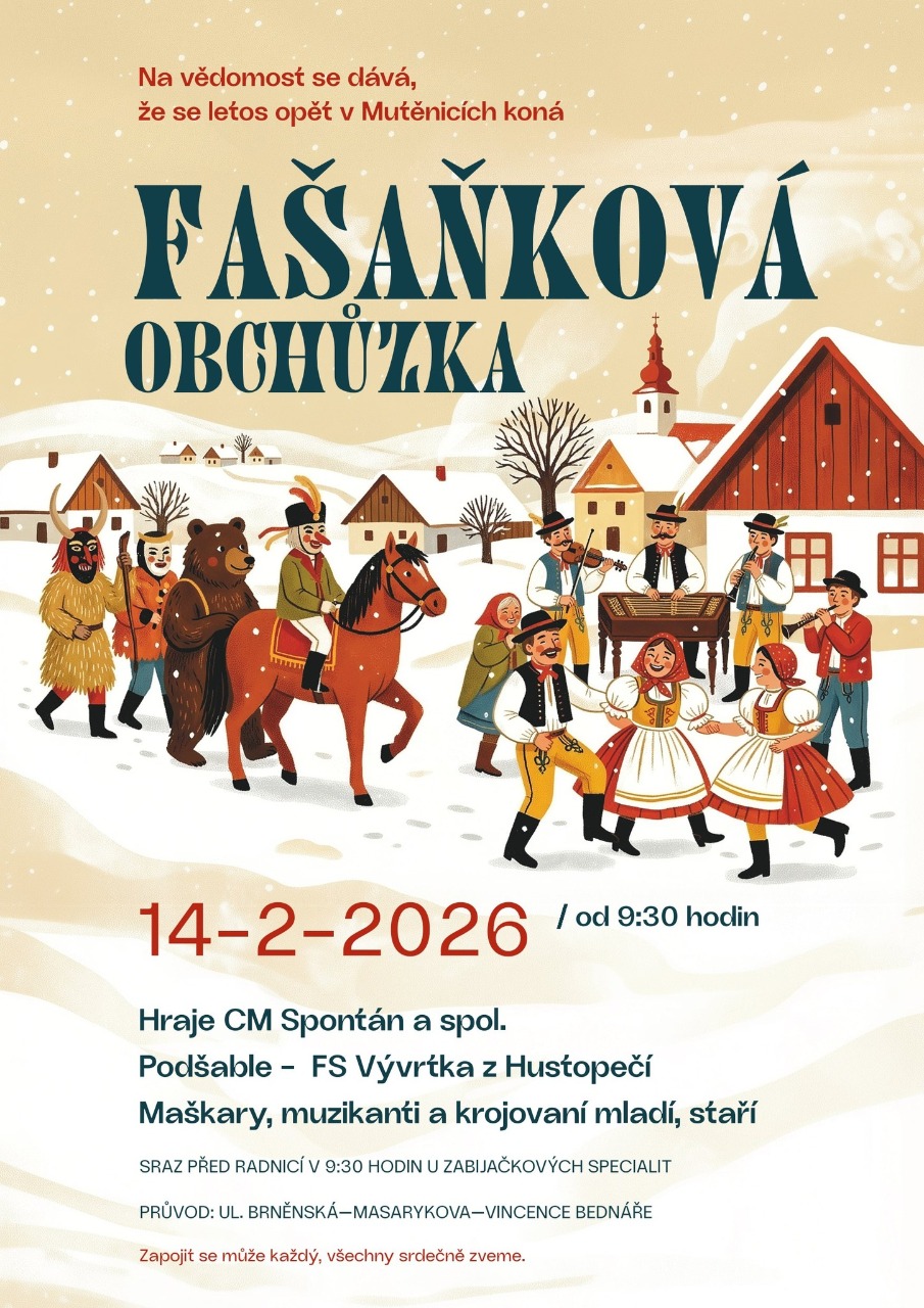 Folklorní soubor Vývrtka předvede podšable na fašaňkové obchůzce v Mutěnicích.